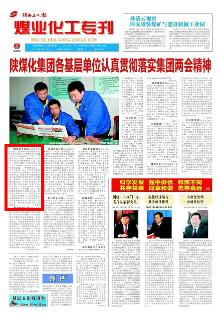 黨政領導召開會議,討論如何結(jié)合集團公司“兩會”精神,開好即將召開的銅川礦業(yè)公司2012年“三會”,把集團公司“兩會”精神真正結(jié)合本單位實際貫徹落實下去。首先,要學習集團公司領導班子善于學習的精神。要把學習當成一種生活態(tài)度、一種精神追求、一種工作責任。其次,要學習集團公司善于總結(jié)的精神。集團公司黨委書記、董事長華煒的重要講話和總經(jīng)理楊照乾所作的《抓管理,謀發(fā)展,為建設一流企業(yè)集團而努力奮斗》的工作報告,布局嚴整,資料豐富,文采飛揚,真正拋去了八股文的陰影,語言干脆利索,令人震撼。第三,真切感受到集團公司以人為本,關注民生的赤誠之心。要特別關注一線勞動者的收入,使中低收入者逐漸改善生活,讓全體職工分享企業(yè)發(fā)展的成果,把讓職工快樂工作、體面生活的追求真正落到實處。