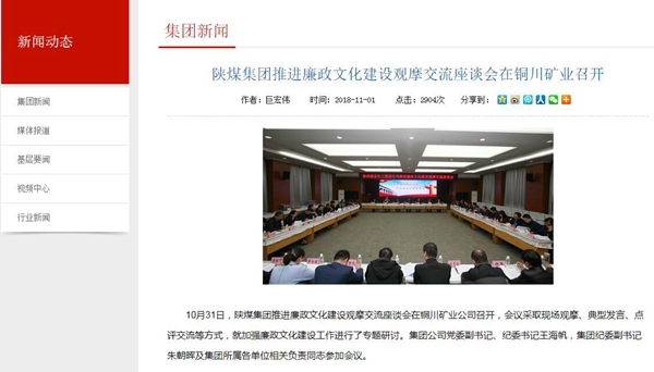 10月31日,陜煤集團推進廉政文化建設觀摩交流座談會在銅川礦業(yè)公司召開,會議采取現(xiàn)場觀摩、典型發(fā)言、點評交流等方式,就加強廉政文化建設工作進行了專題研討。集團公司黨委副書記、紀委書記王海帆,集團紀委副書記朱朝暉及集團所屬各單位相關(guān)負責同志參加會議。
