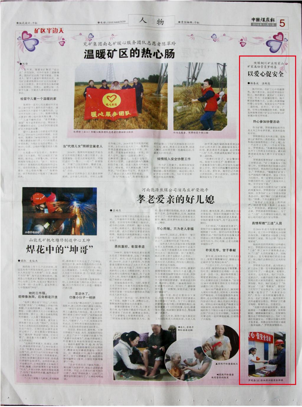 或許是因為女工協(xié)管員與礦工家屬的雙重身份,羅明喜對礦工的感情很深,每次參加礦上女工協(xié)管各項服務(wù)活動,她都不忘叮囑一句:“師傅,下井注意安全!”