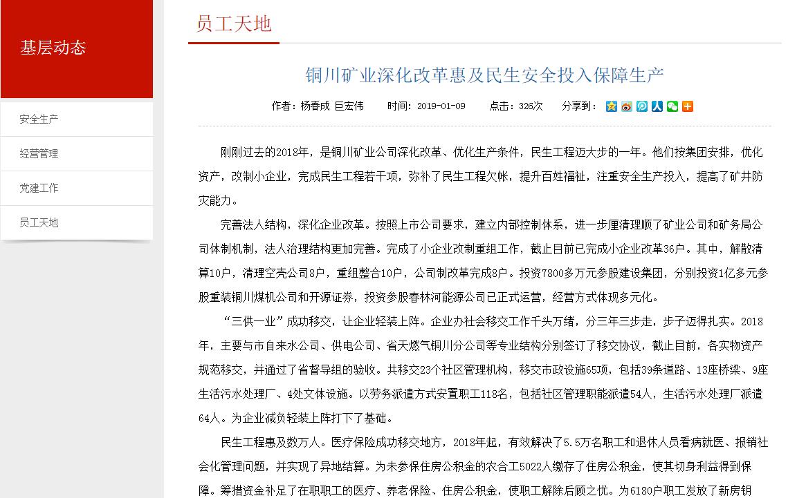 銅川礦業(yè)深化改革惠及民生安全投入保障生產(chǎn)