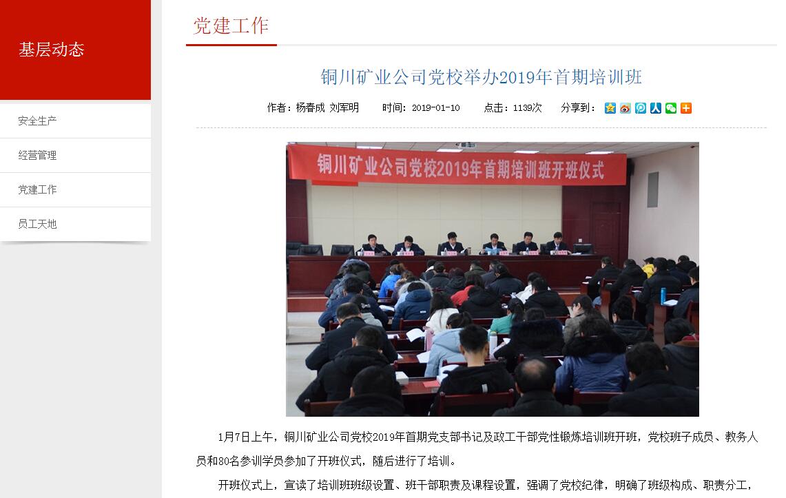 銅川礦業(yè)公司黨校舉辦2019年首期培訓(xùn)班