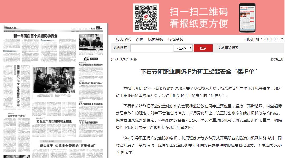 本報訊 銅川礦業(yè)下石節(jié)煤礦通過加大安全基礎(chǔ)投入力度,持續(xù)改善生產(chǎn)作業(yè)環(huán)境等措施,加大礦工職業(yè)病危害防治力度,為礦工們擎起了生命安全的“保護傘”。
