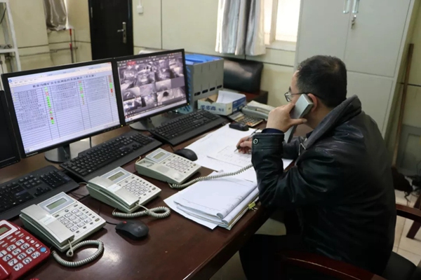 春節(jié)期間,崔家溝項目部調(diào)度員王東在調(diào)度室內(nèi)正在接聽井下匯報的情況,并從大屏幕仔細(xì)觀察井下變化,認(rèn)真做著記錄。