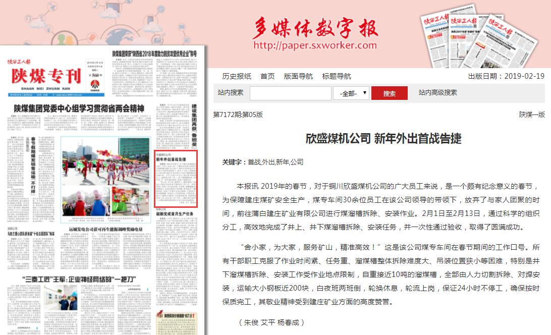 欣盛煤機(jī)公司 新年外出首戰(zhàn)告捷