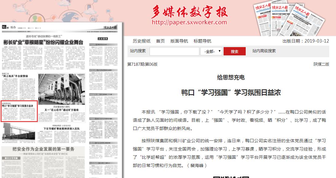 按照陜煤集團(tuán)和銅川礦業(yè)公司的統(tǒng)一安排,連日來,鴨口公司實(shí)名注冊的全體黨員通過“學(xué)習(xí)強(qiáng)國”學(xué)習(xí)平臺,關(guān)注全國兩會,加強(qiáng)理論學(xué)習(xí),上學(xué)習(xí)慕課,曬學(xué)習(xí)積分,交流學(xué)習(xí)經(jīng)驗,形成了“比學(xué)趕幫超”的濃厚學(xué)習(xí)氛圍,運(yùn)用“學(xué)習(xí)強(qiáng)國”學(xué)習(xí)平臺開展學(xué)習(xí)已逐漸成為該全體黨員干部的日常習(xí)慣和行為自覺。(裴海峰)