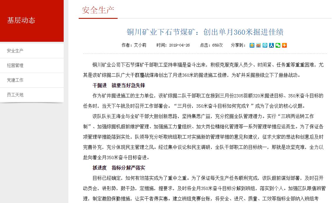 銅川礦業(yè)公司下石節(jié)煤礦干部職工堅(jiān)持幸福是奮斗出來(lái),積極克服克服人員少、時(shí)間緊、任務(wù)重等重重困難,尤其是該礦綜掘二隊(duì)廣大干群鏖戰(zhàn)煤海創(chuàng)出了月進(jìn)360米的掘進(jìn)施工佳績(jī),為礦井采掘接續(xù)立下了赫赫戰(zhàn)功。