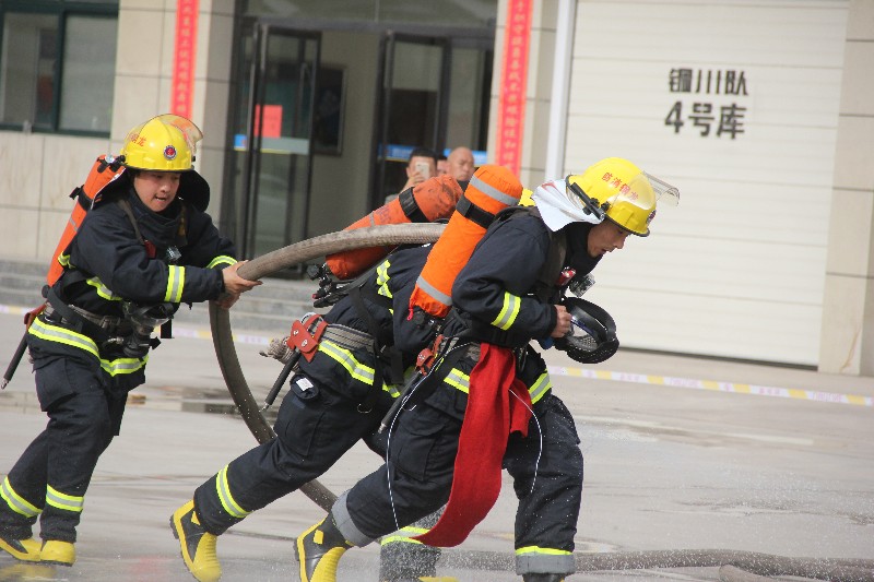迅速穿戴專業(yè)救援衣褲,靴子、帽子,背上空呼,戴好氧氣面罩,全身負重30斤,扛著水龍帶飛快沖向火場……消防員各個如下山猛虎一般,矯健身姿,靈活身手,令人不由得打心底里為他們點贊。他們力爭把救援的時間縮短的再短,再短,再短!因為他們爭取的每一秒鐘,都是在為被困者開辟生命的通道。