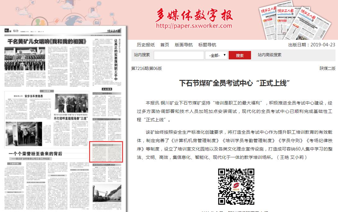 上一條:陜西工人報(bào):銅川礦業(yè)玉華煤礦開展“雙12”安全專項(xiàng)活動 下一條:陜西日報(bào):老煤企煥發(fā)新活力—陜煤集團(tuán)銅川礦業(yè)公司關(guān)井壓產(chǎn)轉(zhuǎn)型發(fā)展紀(jì)實(shí)
