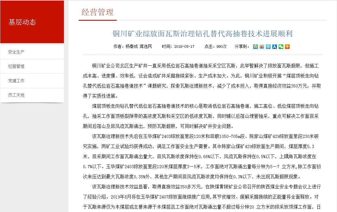 銅川礦業(yè)公司北區(qū)生產(chǎn)礦井一直采用低位巖石高抽巷道抽采采空區(qū)瓦斯,此舉暫解決了綜放面瓦斯超限,但施工成本高、進(jìn)度慢、效率低,還會(huì)造成礦井采掘接續(xù)緊張、生產(chǎn)成本加大。為此,銅川礦業(yè)積極開展“煤層頂板走向鉆孔替代低位巖石高抽巷道技術(shù)”課題研究,探索瓦斯治理新技術(shù),減少了成本投入,取得直接經(jīng)濟(jì)效益350萬元,并取得了實(shí)質(zhì)性進(jìn)展。