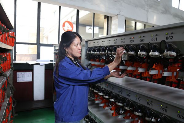 “礦燈是礦工兄弟的‘眼睛’。”清潔、維護、充電、檢修,每天重復的動作,不斷地穿梭在十幾排燈架之間,不僅沒讓充電房的女工感到厭煩,反而多了幾分神圣。她們在工作期間,嚴格確保燈線沒有開裂、燈圈沒有松動、照明亮度可靠、充電接觸及充電電壓到位,避免給職工的井下作業(yè)帶來耽擱。