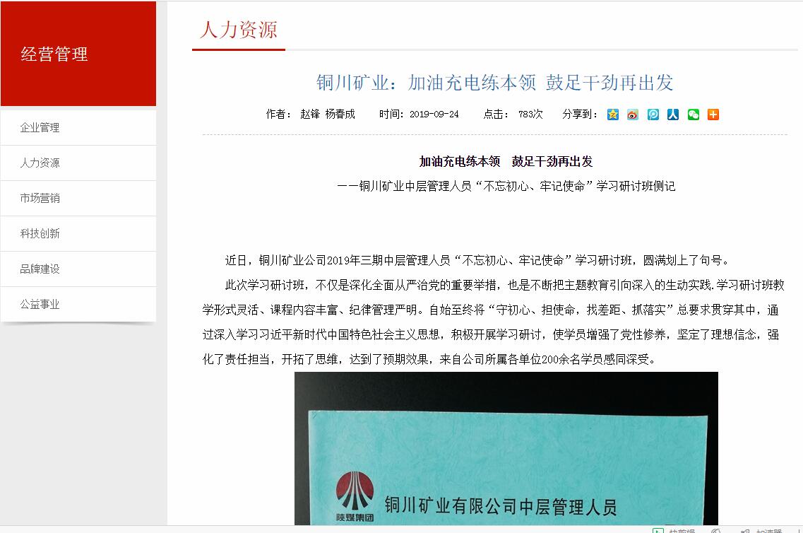 近日,銅川礦業(yè)公司2019年三期中層管理人員“不忘初心、牢記使命”學(xué)習(xí)研討班,圓滿(mǎn)劃上了句號(hào)。