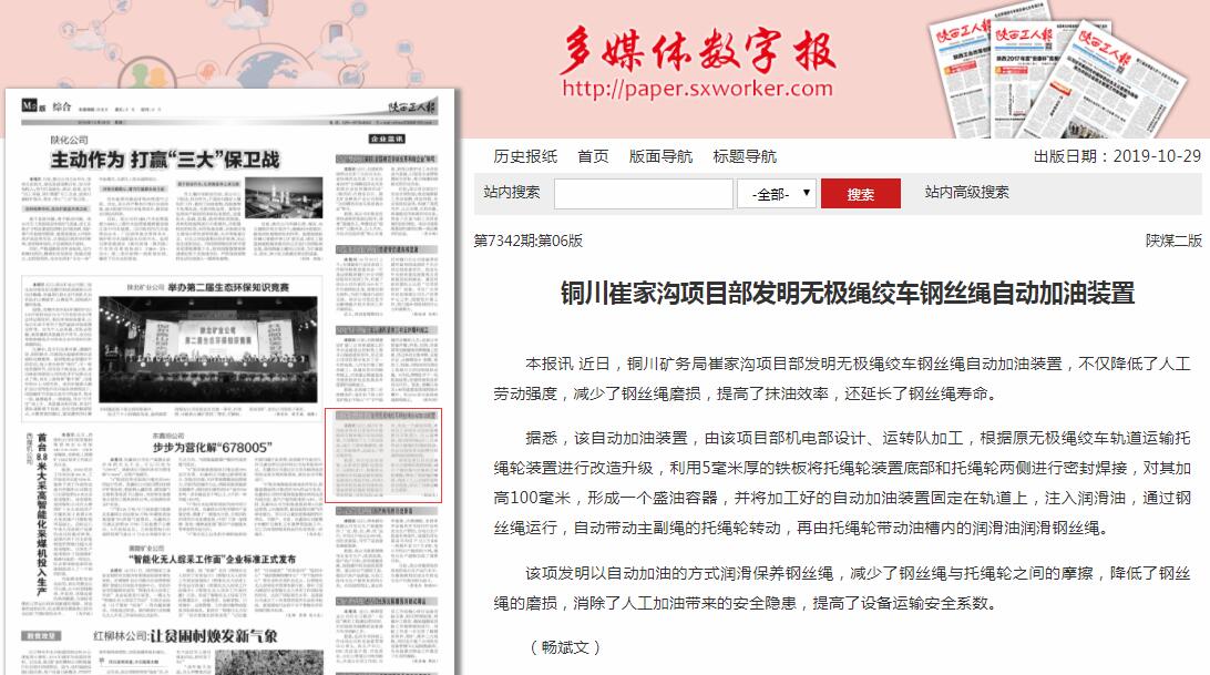 本報(bào)訊 近日,銅川礦務(wù)局崔家溝項(xiàng)目部發(fā)明無(wú)極繩絞車(chē)鋼絲繩自動(dòng)加油裝置,不僅降低了人工勞動(dòng)強(qiáng)度,減少了鋼絲繩磨損,提高了抹油效率,還延長(zhǎng)了鋼絲繩壽命。