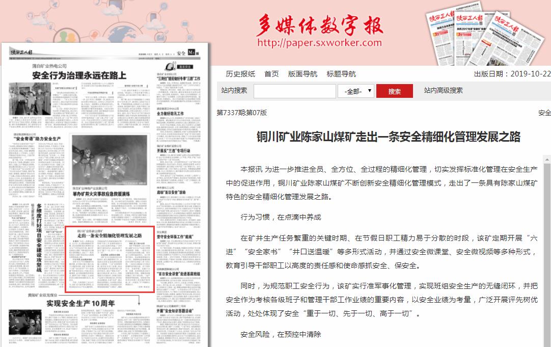 本報(bào)訊 為進(jìn)一步推進(jìn)全員、全方位、全過(guò)程的精細(xì)化管理,切實(shí)發(fā)揮標(biāo)準(zhǔn)化管理在安全生產(chǎn)中的促進(jìn)作用,銅川礦業(yè)陳家山煤礦不斷創(chuàng)新安全精細(xì)化管理模式,走出了一條具有陳家山煤礦特色的安全精細(xì)化管理發(fā)展之路。