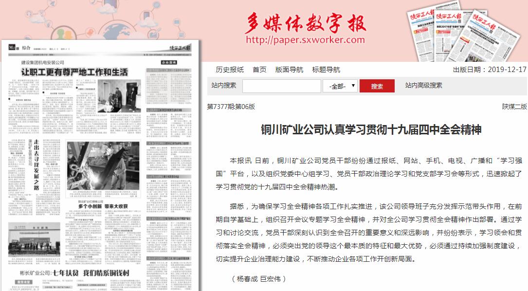 銅川礦業(yè)公司認真學習貫徹十九屆四中全會精神