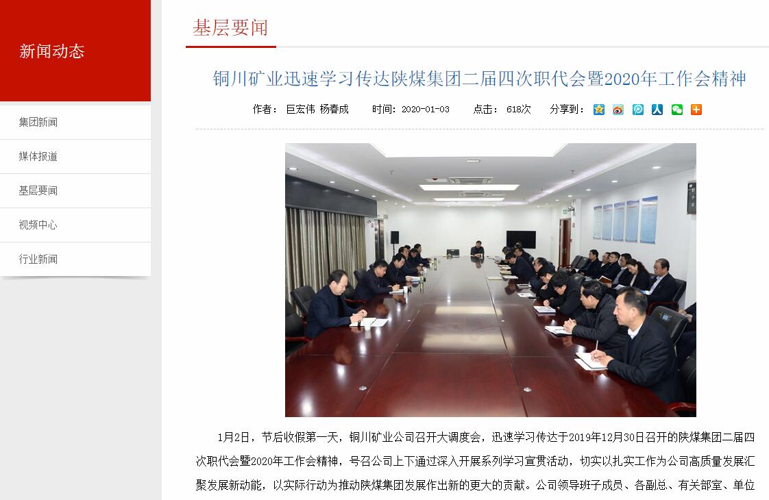 銅川礦業(yè)迅速學習傳達陜煤集團二屆四次職代會暨2020年工作會精神
