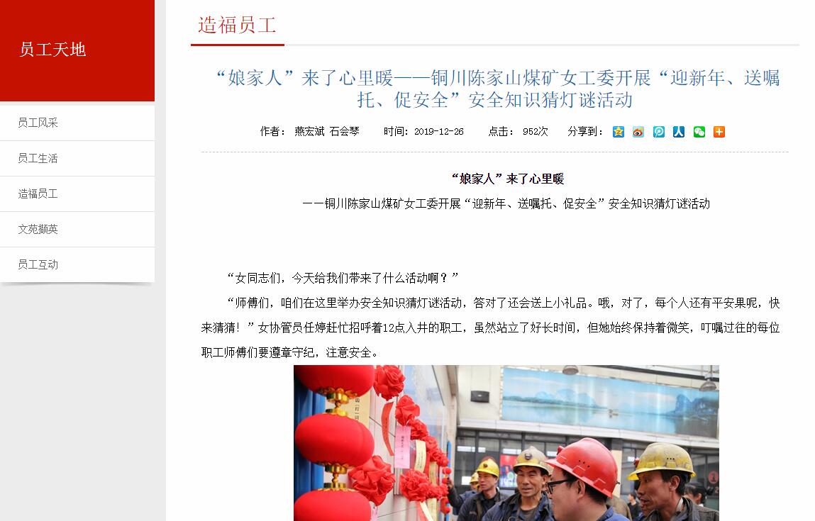 12月23日,銅川陳家山煤礦女工委在迎接新的一年到來之時,組織女工協(xié)管員在井口處開展“迎新年、送囑托、促安全”安全知識猜燈謎活動,溫馨的現(xiàn)場氣氛,讓廣大職工們感受到了“娘家人”的溫暖和情感至真的聲聲叮囑。