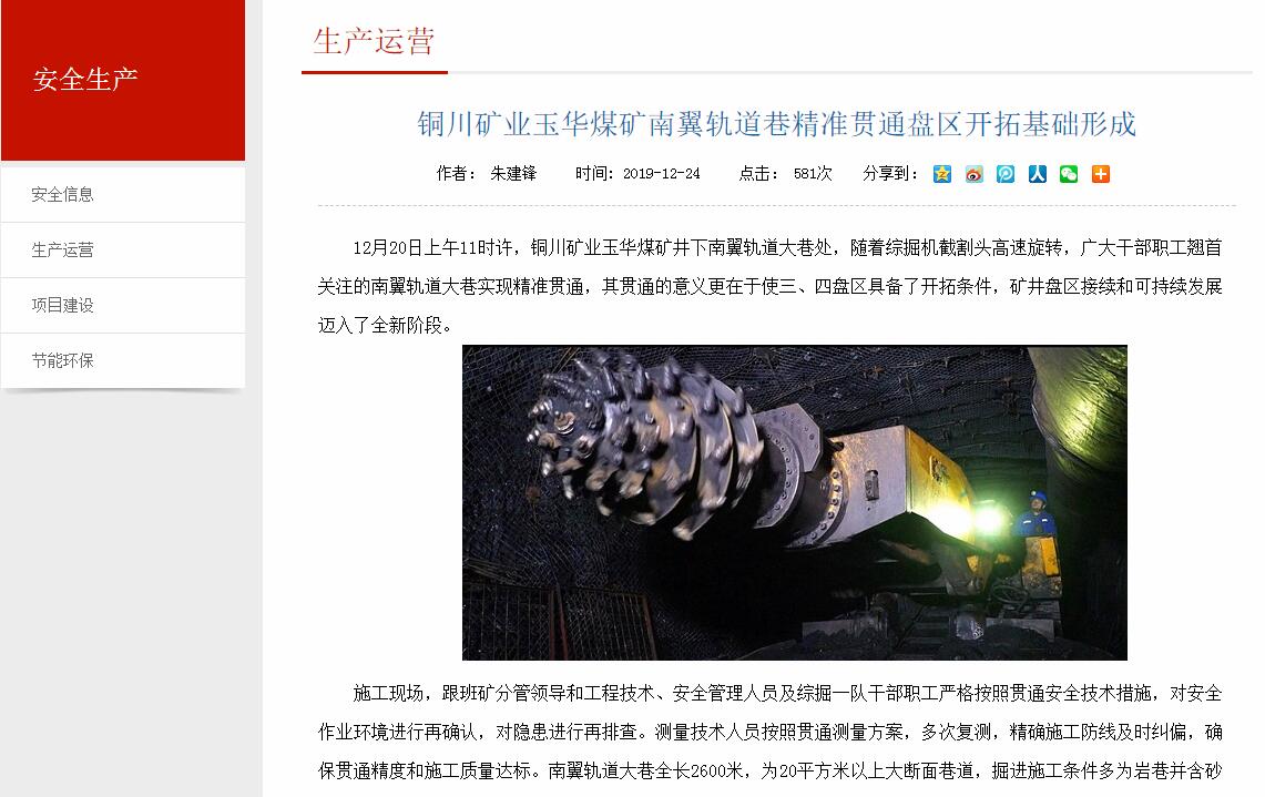 12月20日上午11時(shí)許,銅川礦業(yè)玉華煤礦井下南翼軌道大巷處,隨著綜掘機(jī)截割頭高速旋轉(zhuǎn),廣大干部職工翹首關(guān)注的南翼軌道大巷實(shí)現(xiàn)精準(zhǔn)貫通,其貫通的意義更在于使三、四盤區(qū)具備了開拓條件,礦井盤區(qū)接續(xù)和可持續(xù)發(fā)展邁入了全新階段。