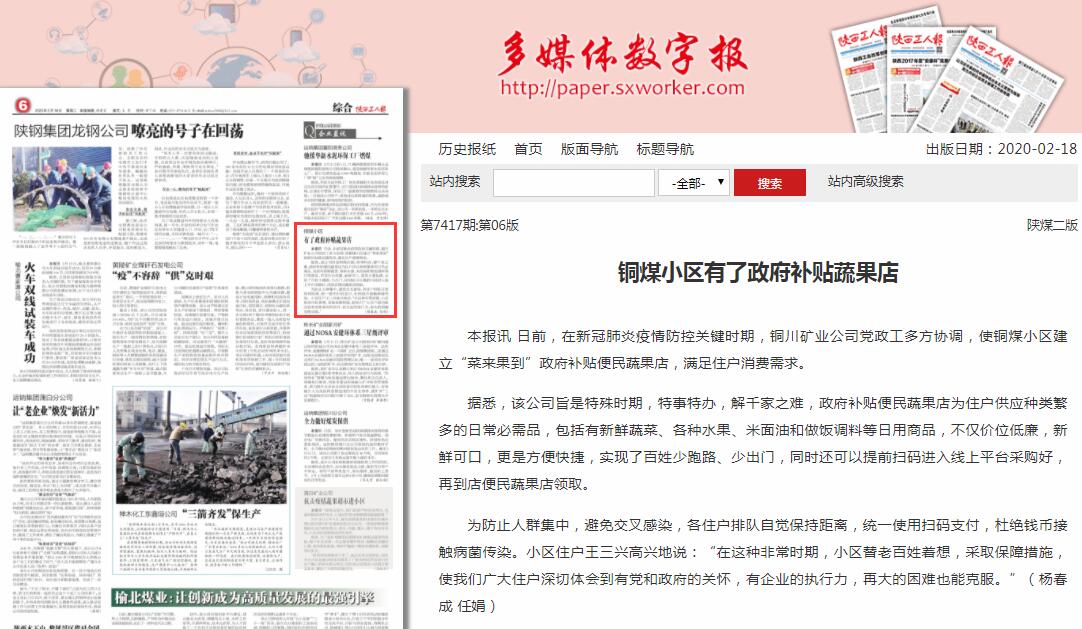 本報訊 日前,在新冠肺炎疫情防控關(guān)鍵時期,銅川礦業(yè)公司黨政工多方協(xié)調(diào),使銅煤小區(qū)建立“菜來果到”政府補貼便民蔬果店,滿足住戶消費需求。