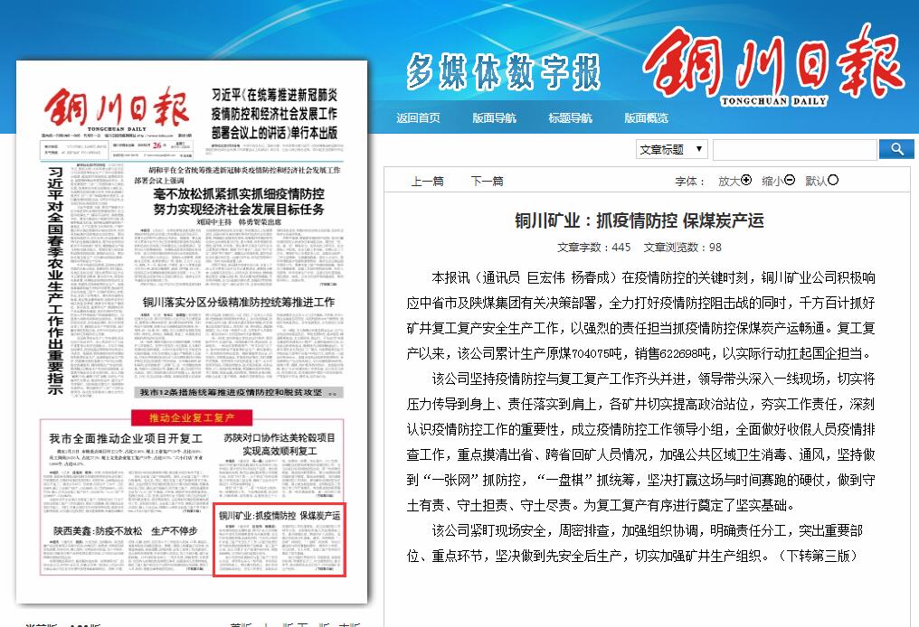 銅川礦業(yè):抓疫情防控 保煤炭產(chǎn)運