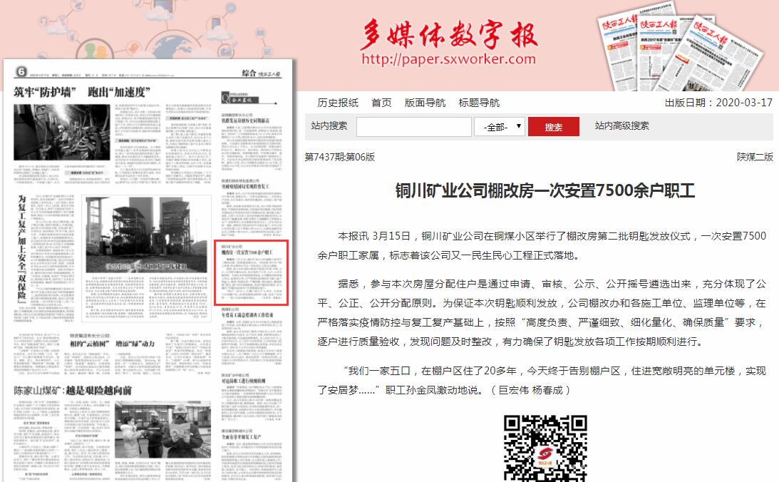 銅川礦業(yè)公司棚改房一次安置7500余戶職工