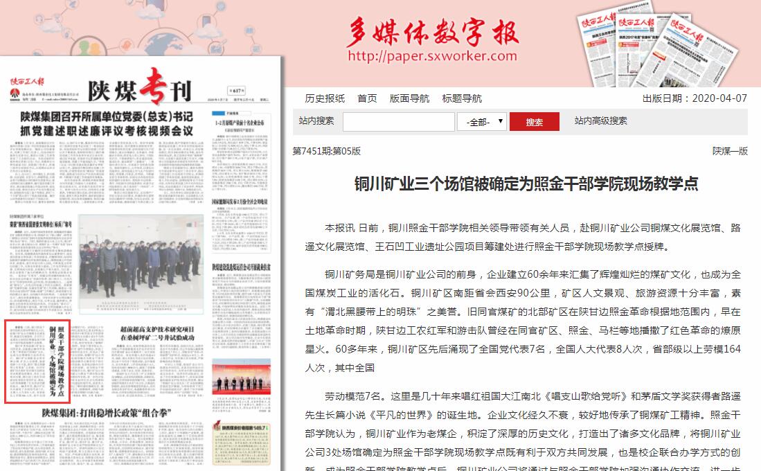 銅川礦業(yè)三個(gè)場館被確定為照金干部學(xué)院現(xiàn)場教學(xué)點(diǎn)