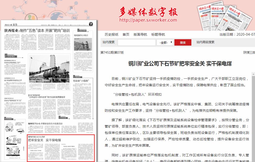 目前,銅川礦業(yè)下石節(jié)礦堅持一手抓疫情防控,一手抓安全生產(chǎn),廣大干部職工立足崗位,守好安全生產(chǎn)生命線,把牢設備運行安全關,實干疫情防控,保障電煤供應,彰顯了國企擔當。