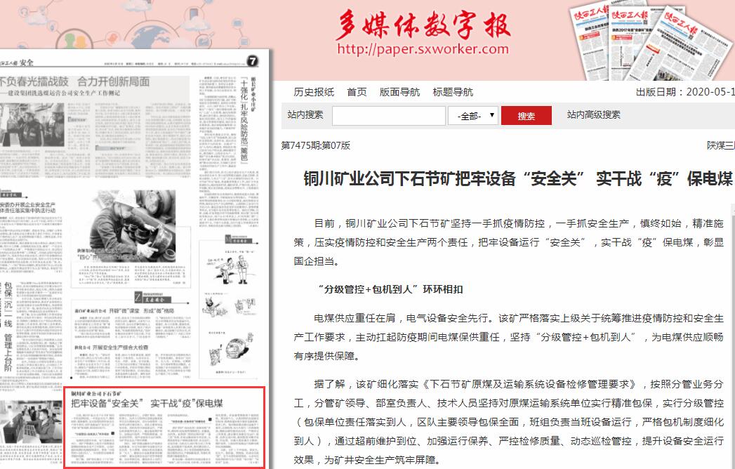 銅川礦業(yè)公司下石節(jié)礦把牢設(shè)備“安全關(guān)” 實干戰(zhàn)“疫”保電煤