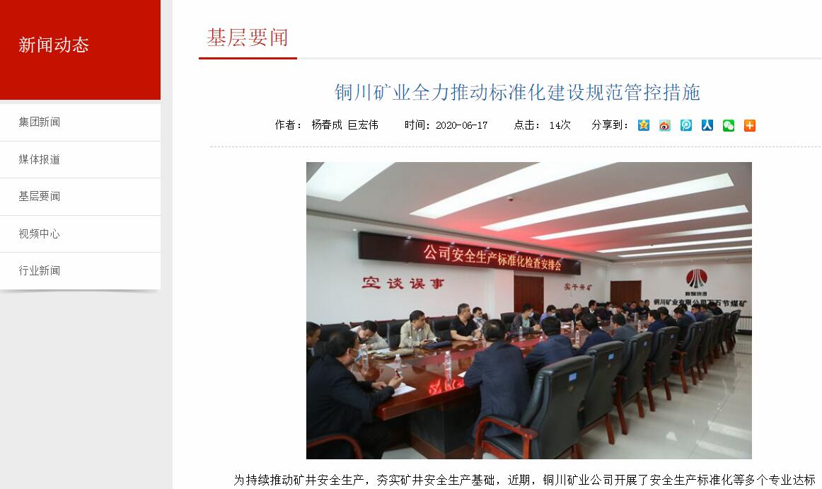 銅川礦業(yè)全力推動標準化建設規(guī)范管控措施