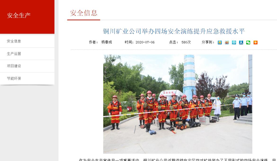 銅川礦業(yè)公司舉辦四場安全演練提升應(yīng)急救援水平