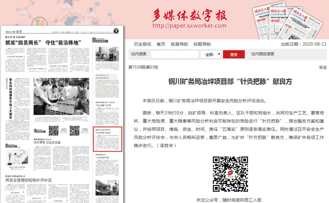 銅川礦務(wù)局冶坪項(xiàng)目部“針灸把脈”獻(xiàn)良方