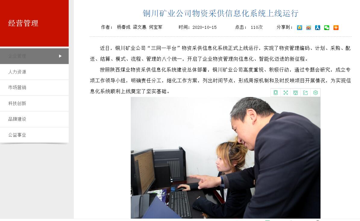 近日,銅川礦業(yè)公司“三網(wǎng)一平臺”物資采供信息化系統(tǒng)正式上線運行,實現(xiàn)了物資管理編碼、計劃、采購、配送、結(jié)算、模式、流程、管理的八個統(tǒng)一,開啟了企業(yè)物資管理向信息化、智能化邁進(jìn)的新征程。