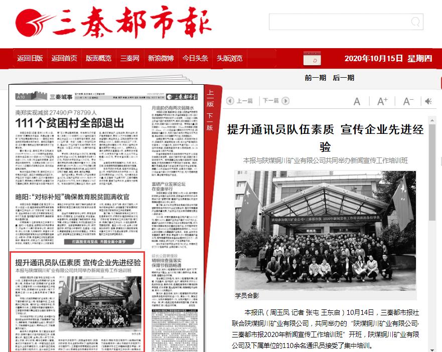 本報(bào)訊(周玉鳳 記者 張屯 王東啟)10月14日,三秦都市報(bào)社聯(lián)合陜煤銅川礦業(yè)有限公司,共同舉辦的“陜煤銅川礦業(yè)有限公司·三秦都市報(bào)2020年新聞宣傳工作培訓(xùn)班”開班,陜煤銅川礦業(yè)有限公司及下屬單位的110余名通訊員接受了集中培訓(xùn)。