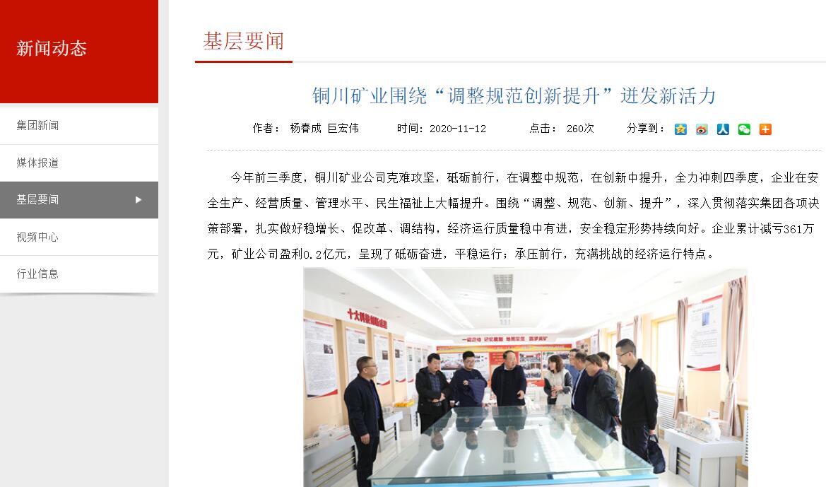 今年,銅川礦業(yè)圍繞“調(diào)整、規(guī)范、創(chuàng)新、提升”,在安全生產(chǎn)、體制機(jī)制、經(jīng)營質(zhì)量、管理水平、生產(chǎn)效率、民生福祉等都不同程度向更高質(zhì)量、更高水平邁進(jìn)。明年及“十四五”時(shí)期,企業(yè)經(jīng)營壓力將持續(xù)增大,全面兼顧“存量”的高質(zhì)量和“增量”的可持續(xù)發(fā)展,是今后一個(gè)時(shí)期銅川礦業(yè)的重大戰(zhàn)略任務(wù)。面臨的困難和危機(jī),切實(shí)增強(qiáng)危機(jī)意識(shí)、群策群力,勇于開拓,化危為機(jī)是共識(shí),努力實(shí)現(xiàn)公司更高質(zhì)量、更有效率、更可持續(xù)的發(fā)展。(楊春成 巨宏偉)