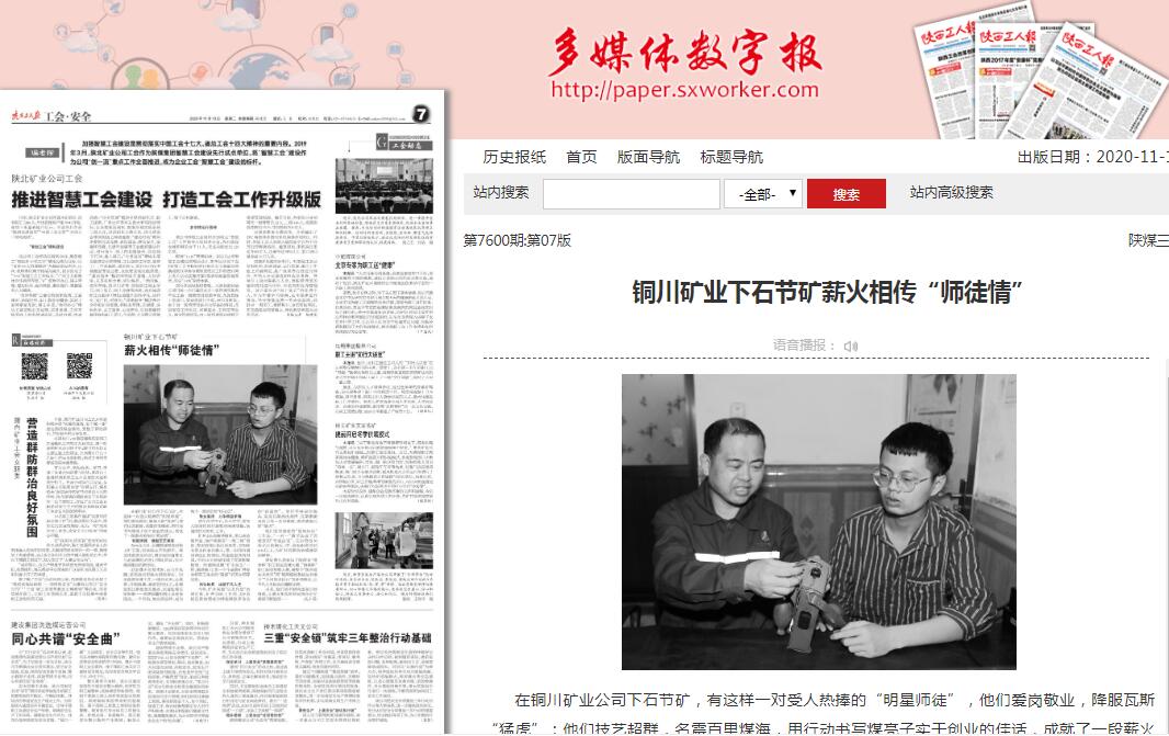 在銅川礦業(yè)公司下石節(jié)礦,有這樣一對受人熱捧的“明星師徒”,他們愛崗敬業(yè),降服瓦斯“猛虎”;他們技藝超群,名震百里煤海,用行動書寫煤亮子實(shí)干創(chuàng)業(yè)的佳話,成就了一段薪火相傳的“師徒情”。