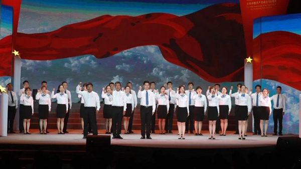 100分鐘的演出精彩紛呈,高潮迭起,為現(xiàn)場干部職工獻上了一場豐盛的視覺盛宴。演出在全體人員齊唱《沒有共產(chǎn)黨就沒有新中國》的歌聲中完美落幕,慷慨激昂、雄壯有力的歌聲使現(xiàn)場氣氛達到頂點。