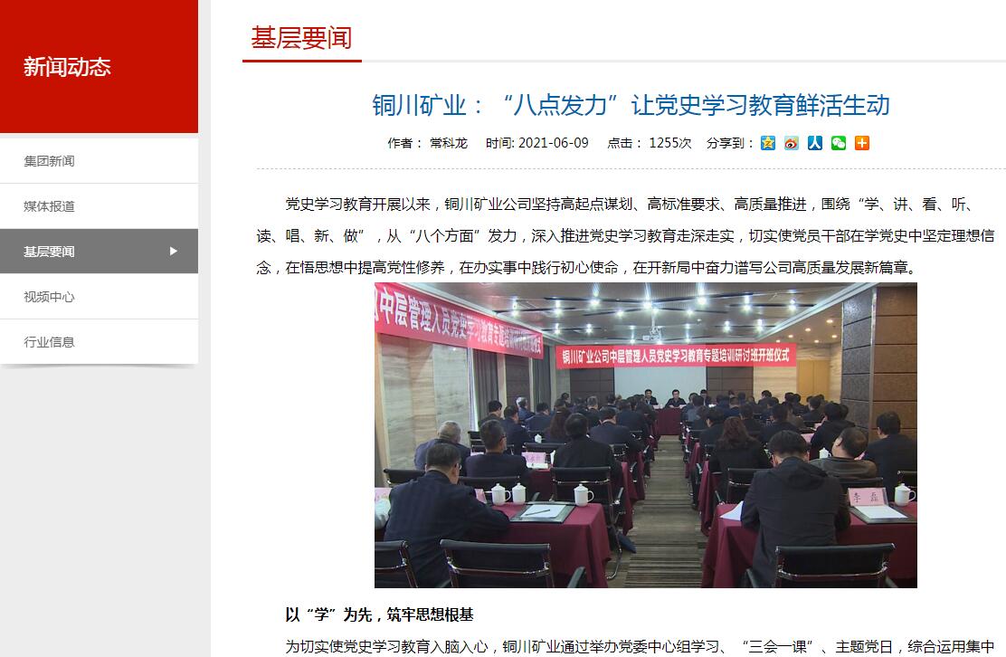 黨史學(xué)習(xí)教育開展以來,銅川礦業(yè)公司堅持高起點謀劃、高標(biāo)準(zhǔn)要求、高質(zhì)量推進,圍繞“學(xué)、講、看、聽、讀、唱、新、做”,從“八個方面”發(fā)力,深入推進黨史學(xué)習(xí)教育走深走實,切實使黨員干部在學(xué)黨史中堅定理想信念,在悟思想中提高黨性修養(yǎng),在辦實事中踐行初心使命,在開新局中奮力譜寫公司高質(zhì)量發(fā)展新篇章。
