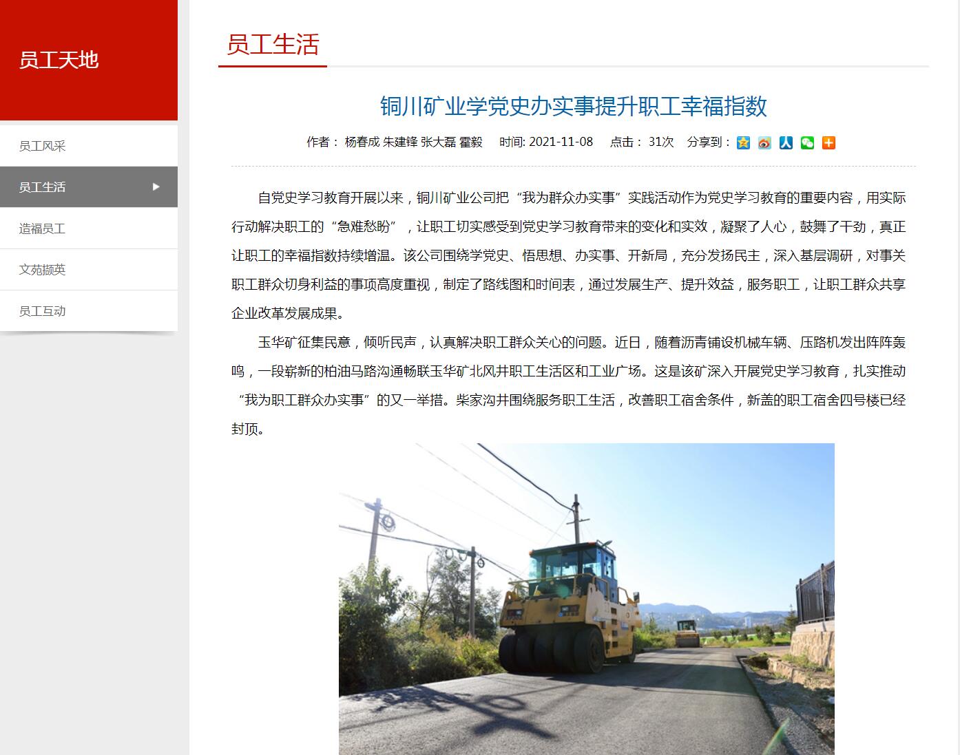 玉華礦征集民意,傾聽民聲,認(rèn)真解決職工群眾關(guān)心的問(wèn)題。近日,隨著瀝青鋪設(shè)機(jī)械車輛、壓路機(jī)發(fā)出陣陣轟鳴,一段嶄新的柏油馬路溝通暢聯(lián)玉華礦北風(fēng)井職工生活區(qū)和工業(yè)廣場(chǎng)。這是該礦深入開展黨史學(xué)習(xí)教育,扎實(shí)推動(dòng)“我為職工群眾辦實(shí)事”的又一舉措。柴家溝井圍繞服務(wù)職工生活,改善職工宿舍條件,新蓋的職工宿舍四號(hào)樓已經(jīng)封頂。