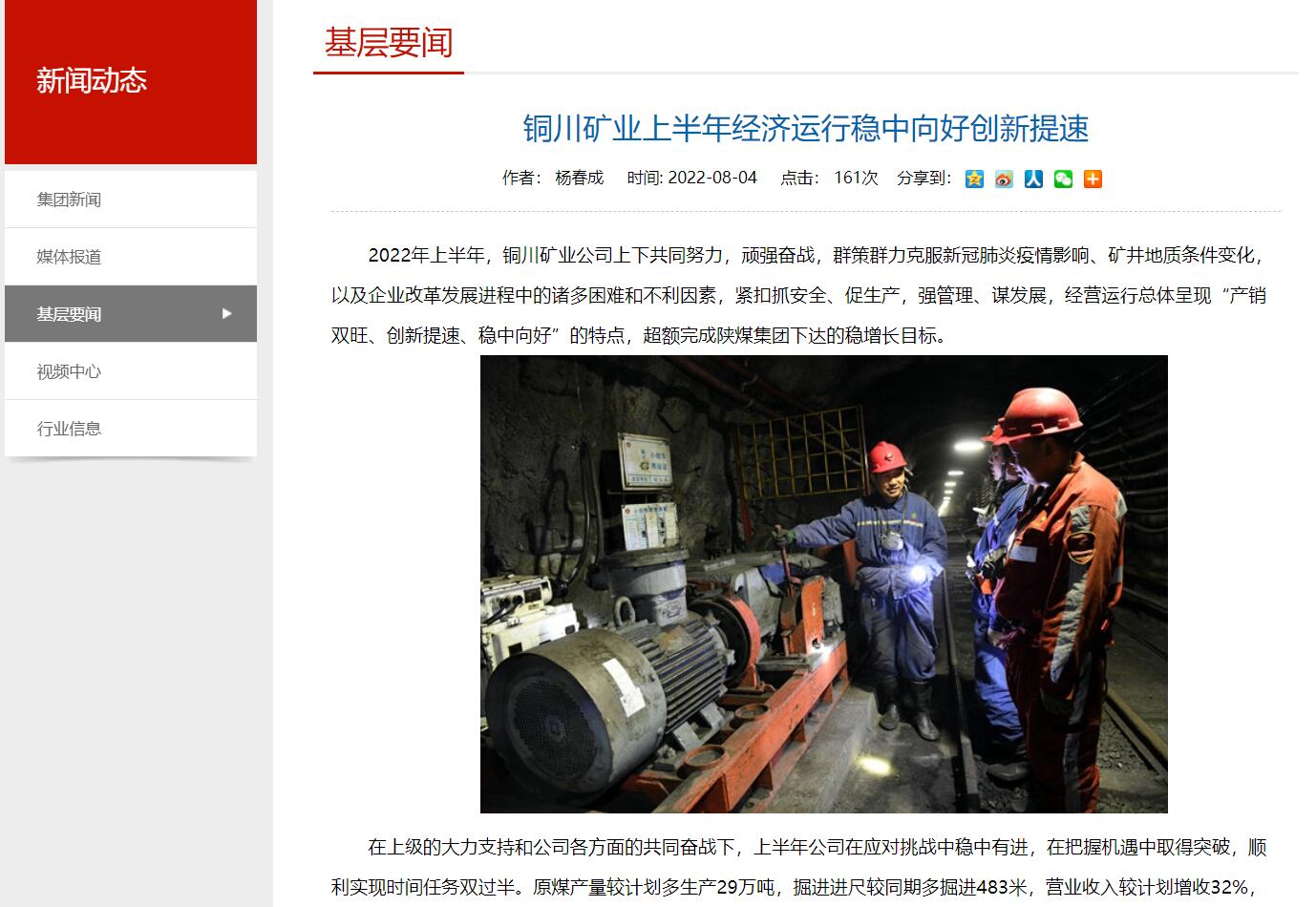 2022年上半年,銅川礦業(yè)公司上下共同努力,頑強奮戰(zhàn),群策群力克服新冠肺炎疫情影響、礦井地質(zhì)條件變化,以及企業(yè)改革發(fā)展進程中的諸多困難和不利因素,緊扣抓安全、促生產(chǎn),強管理、謀發(fā)展,經(jīng)營運行總體呈現(xiàn)“產(chǎn)銷雙旺、創(chuàng)新提速、穩(wěn)中向好”的特點,超額完成陜煤集團下達的穩(wěn)增長目標。
