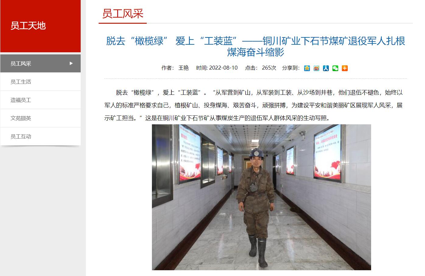 脫去“橄欖綠”,愛上“工裝藍(lán)”。“從軍營到礦山,從軍裝到工裝、從沙場到井巷,他們退伍不褪色,始終以軍人的標(biāo)準(zhǔn)嚴(yán)格要求自己,植根礦山、投身煤海、艱苦奮斗,頑強拼搏,為建設(shè)平安和諧美麗礦區(qū)展現(xiàn)軍人風(fēng)采,展示礦工擔(dān)當(dāng)。”這是在銅川礦業(yè)下石節(jié)礦從事煤炭生產(chǎn)的退伍軍人群體風(fēng)采的生動寫照。