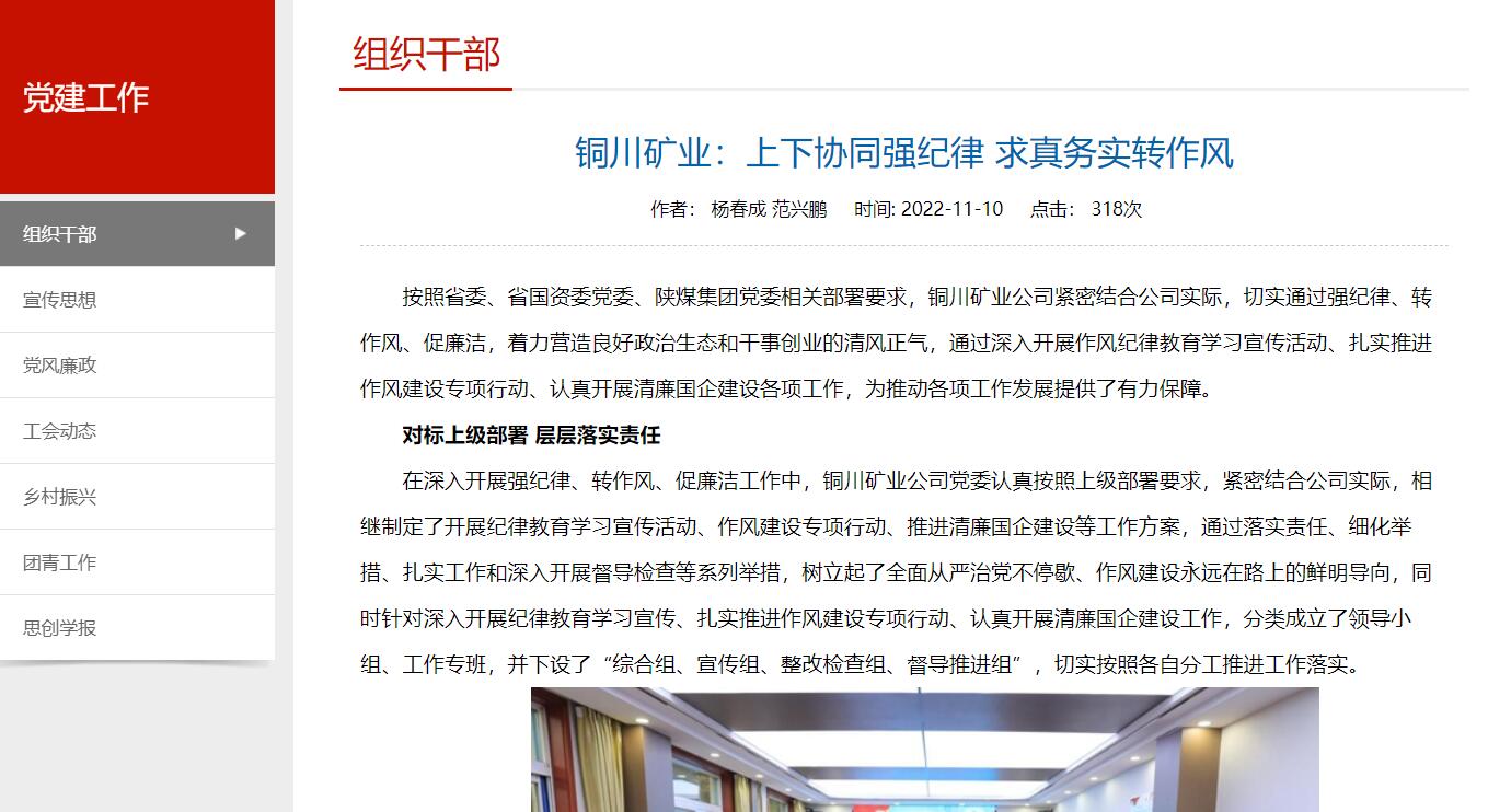 按照省委、省國資委黨委、陜煤集團黨委相關部署要求,銅川礦業(yè)公司緊密結合公司實際,切實通過強紀律、轉作風、促廉潔,著力營造良好政治生態(tài)和干事創(chuàng)業(yè)的清風正氣,通過深入開展作風紀律教育學習宣傳活動、扎實推進作風建設專項行動、認真開展清廉國企建設各項工作,為推動各項工作發(fā)展提供了有力保障。