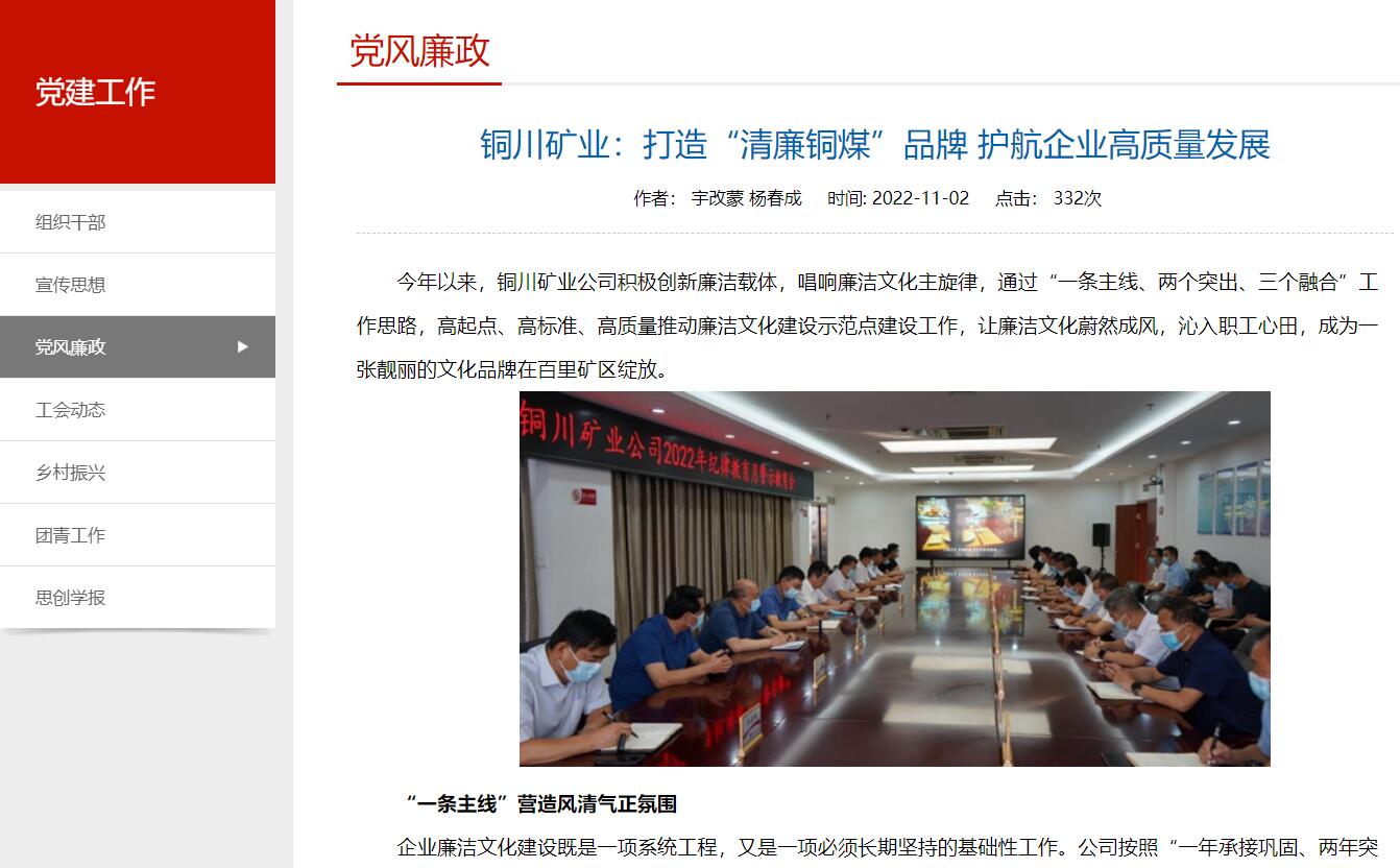 今年以來,銅川礦業(yè)公司積極創(chuàng)新廉潔載體,唱響廉潔文化主旋律,通過“一條主線、兩個突出、三個融合”工作思路,高起點、高標準、高質(zhì)量推動廉潔文化建設示范點建設工作,讓廉潔文化蔚然成風,沁入職工心田,成為一張靚麗的文化品牌在百里礦區(qū)綻放。