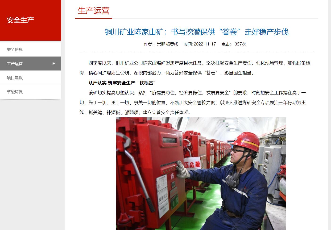 四季度以來,銅川礦業(yè)公司陳家山煤礦聚焦年度目標(biāo)任務(wù),堅決扛起安全生產(chǎn)責(zé)任,強化現(xiàn)場管理,加強設(shè)備檢修,精心呵護(hù)煤質(zhì)生命線,深挖內(nèi)部潛力,傾力答好安全保供“答卷”,彰顯國企擔(dān)當(dāng)。