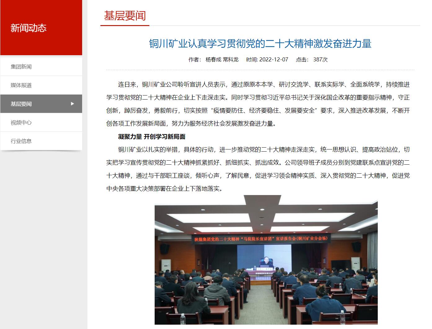 連日來,銅川礦業(yè)公司聆聽宣講人員表示,通過原原本本學(xué)、研討交流學(xué)、聯(lián)系實際學(xué)、全面系統(tǒng)學(xué),持續(xù)推進學(xué)習(xí)貫徹黨的二十大精神在企業(yè)上下走深走實。同時學(xué)習(xí)貫徹習(xí)近平總書記關(guān)于深化國企改革的重要指示精神,守正創(chuàng)新,踔厲奮發(fā),勇毅前行,切實按照“疫情要防住、經(jīng)濟要穩(wěn)住、發(fā)展要安全”要求,深入推進改革發(fā)展,不斷開創(chuàng)各項工作發(fā)展新局面,努力為服務(wù)經(jīng)濟社會發(fā)展激發(fā)奮進力量。