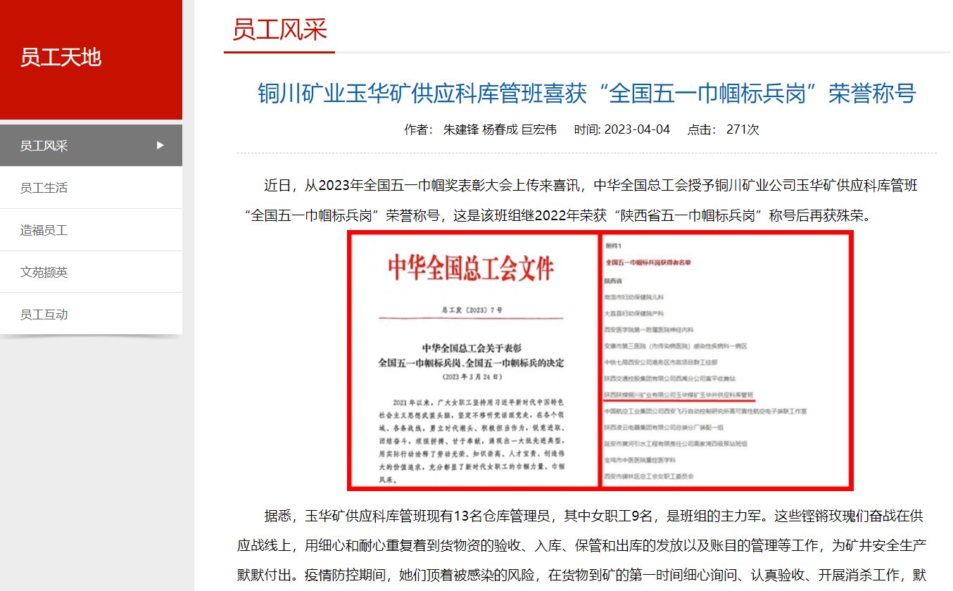 近日,從2023年全國(guó)五一巾幗獎(jiǎng)表彰大會(huì)上傳來(lái)喜訊,中華全國(guó)總工會(huì)授予銅川礦業(yè)公司玉華礦供應(yīng)科庫(kù)管班“全國(guó)五一巾幗標(biāo)兵崗”榮譽(yù)稱號(hào),這是該班組繼2022年榮獲“陜西省五一巾幗標(biāo)兵崗”稱號(hào)后再獲殊榮。