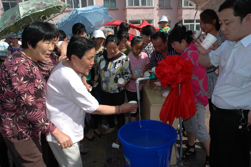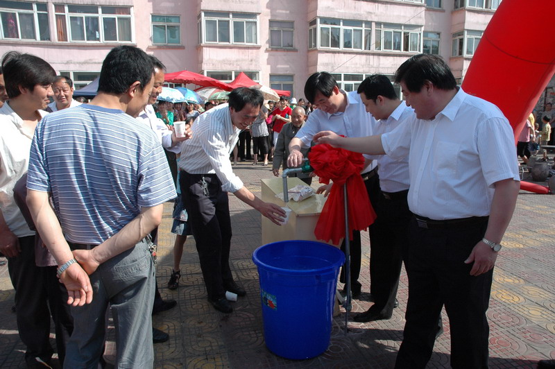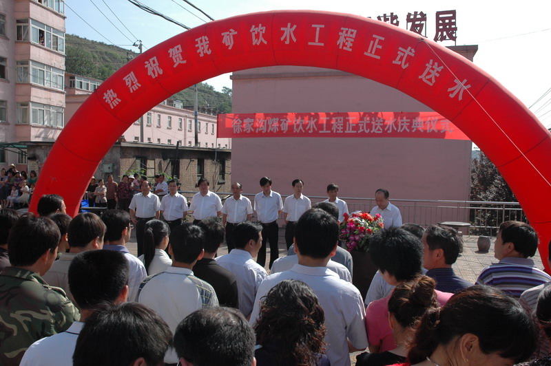 6月12日中午,伴隨著喜慶的鑼鼓和鞭炮聲,在群眾的歡呼聲中,徐家溝煤礦黨委書記劉保社擰開了水管龍頭,清澈透亮的水嘩嘩地流淌了出來,人們爭先恐后涌上前去,用紙杯子接水喝。這水真涼、真甜??!人們發(fā)出贊嘆聲。從此,徐家溝煤礦結(jié)束了40多年定時供水制的日子,實現(xiàn)了24小時都有飲用水。