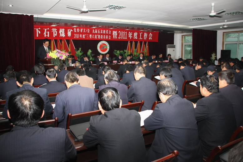 1月5日,銅川礦業(yè)公司下石節(jié)煤礦隆重召開黨委(擴大)會、九屆五次職代會、2010年度“三型六化”建設表彰會暨2011年度工作會。該礦黨政領導與來自全礦各條戰(zhàn)線上的干部職工代表參加了此次盛會。會議總結(jié)了2010年及“十一五”工作,表彰了全礦各條戰(zhàn)線上涌現(xiàn)出的先進集體和先進個人,安排部署了2011年的工作任務,為科學指導全年工作,實現(xiàn)“十二五”良好開局奠定了堅實基礎。