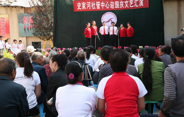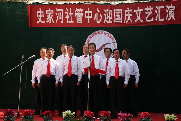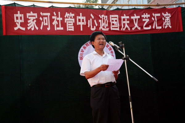 演出在歡慶的鑼鼓聲中拉開了序幕。史家河社區(qū)管理中心黨總支副書記楊樹新致歡迎詞。局副總劉國(guó)強(qiáng)做了重要講話。史家河社區(qū)近年來(lái)不斷創(chuàng)新管理,推行人性化、親情化管理,重視職工文化生活,先后成立了秧歌隊(duì)、鑼鼓隊(duì)、門球隊(duì)等群眾性文體組織,為“百人鑼鼓隊(duì)”和“舞龍隊(duì)”購(gòu)買了鑼鼓樂(lè)器,統(tǒng)一了服裝,建立了訓(xùn)練場(chǎng)地,使廣大職工家屬受到精神熏陶,在社區(qū)形成了一道靚麗的風(fēng)景線。希望史家河社區(qū)繼續(xù)發(fā)揚(yáng)成績(jī),再接再厲,按照局黨政的部署,強(qiáng)化社區(qū)職能,打造文化社區(qū)。并預(yù)祝演出圓滿成功。