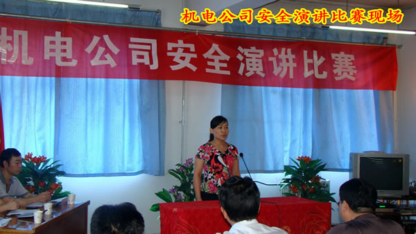 今年安全生產(chǎn)活動(dòng)月,機(jī)電公司組織了豐富多彩的安全活動(dòng),本次安全演講比賽是機(jī)電公司安全生產(chǎn)月安排的一項(xiàng)活動(dòng),得到了公司黨政領(lǐng)導(dǎo)的大力支持,公司司軍社經(jīng)理親臨現(xiàn)場(chǎng)指導(dǎo)工作,使得活動(dòng)開展非常順利,在演講比賽開始前,做了精彩的致辭,