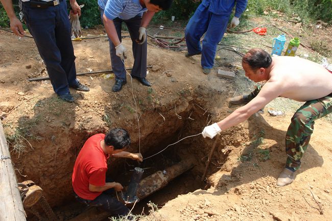 (圖為搶修管路現(xiàn)場 )