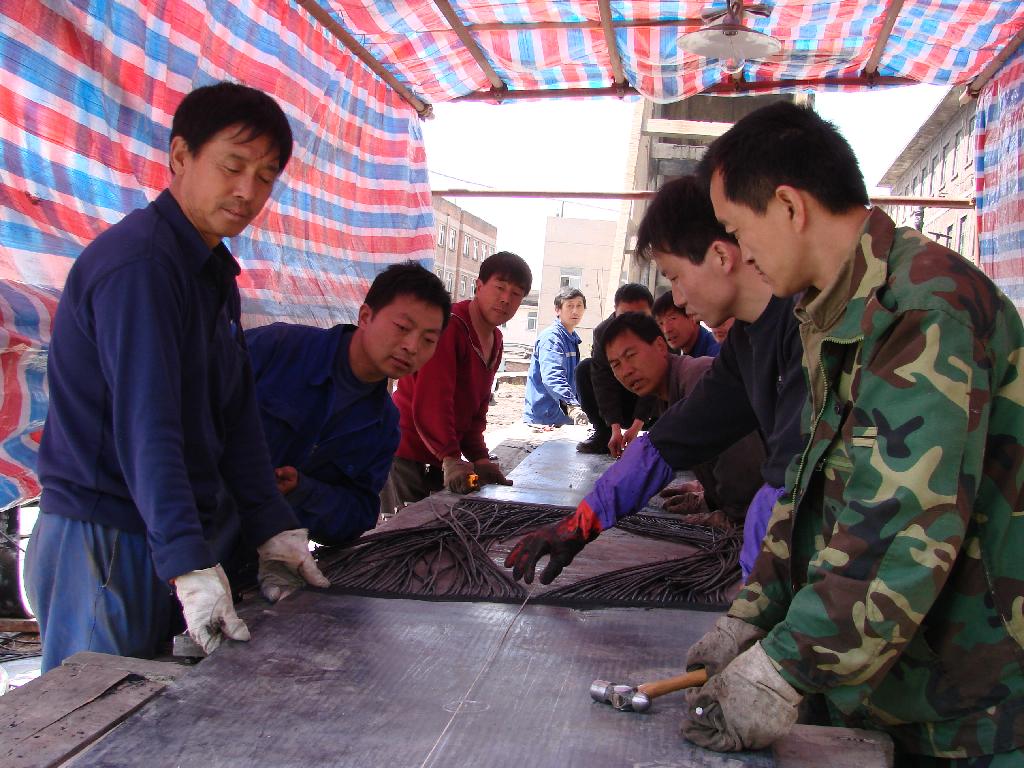 為保質(zhì)保量完成任務(wù),該礦成立工程領(lǐng)導(dǎo)小組,抽調(diào)骨干人員深入現(xiàn)場,分析研究,制定施工組織方案;細(xì)化工程分工,明確工程進(jìn)度,嚴(yán)格工序要求,加大現(xiàn)場管理。施工現(xiàn)場,各業(yè)務(wù)科室協(xié)同作戰(zhàn),作業(yè)現(xiàn)場井然有序,扒接頭、打毛、拋光、擰螺緊栓每一個環(huán)節(jié)都有技術(shù)員跟班指導(dǎo),做到一絲不茍,確保膠帶接頭嚴(yán)絲合縫。主井膠帶通行的中心線兩側(cè),4臺牽引絞車固定完畢,其余絞車正在加緊固定。目前,各項前期工作正在井然有序的進(jìn)行,為確保高質(zhì)量、高標(biāo)準(zhǔn)完成任務(wù)奠定基礎(chǔ)。 (圖分別為工人固定牽引絞車;為膠帶進(jìn)行續(xù)接現(xiàn)場。)